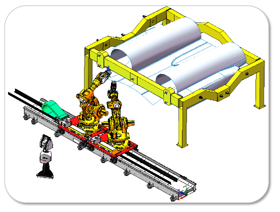 機器人技術中心目前擁有銑削加工機器人、六維激光跟蹤儀、激光掃描儀、機器人線性導軌、機器人銑削主軸、機器人對刀儀、機器人離線編程軟件等先進機器人銑削加工硬件及軟件,可為用戶提供多機器人協同銑削加工的動力學建模-隨動支撐-補償控制一體化系統解決方案,機器人銑削加工相關研究成果已在國內某航空企業的復合材料蒙皮機器人銑削加工中得到推廣應用。