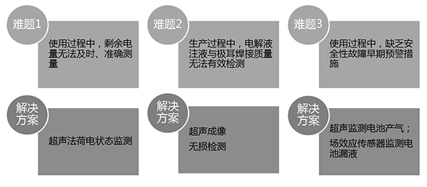 針對鋰離子動(dòng)力與儲能電池實(shí)際使用與生產(chǎn)中的所面臨的技術(shù)難題,采用超聲、半導(dǎo)體傳感等特色技術(shù),以極低的成本,大幅提高電池的生產(chǎn)質(zhì)量、使用效率與安全性。