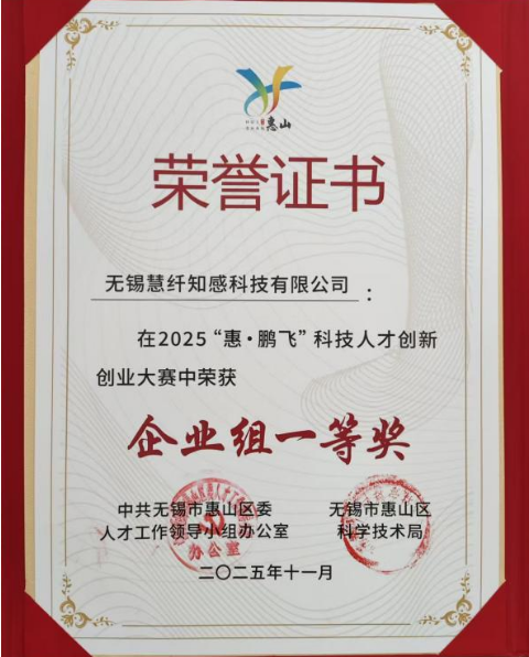 2025年11月20日,2025“惠·鵬飛”科技人才創(chuàng)新創(chuàng)業(yè)大賽總決賽暨頒獎儀式隆重舉行。經(jīng)過與眾多科技企業(yè)的激烈角逐,無錫慧纖知感科技有限公司憑借卓越的創(chuàng)新實力與廣闊的商業(yè)前景脫穎而出,一舉奪得企業(yè)組一等獎。